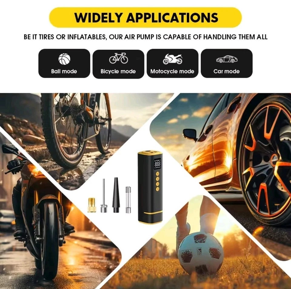 Be ready for any roadside emergency or adventure with this Portable Air Compressor Tire Inflator. Compact yet powerful, this 12V air pump delivers fast, reliable inflation for car tires, bike tires, balls, and inflatables β perfect for drivers, commuters, and outdoor enthusiasts.