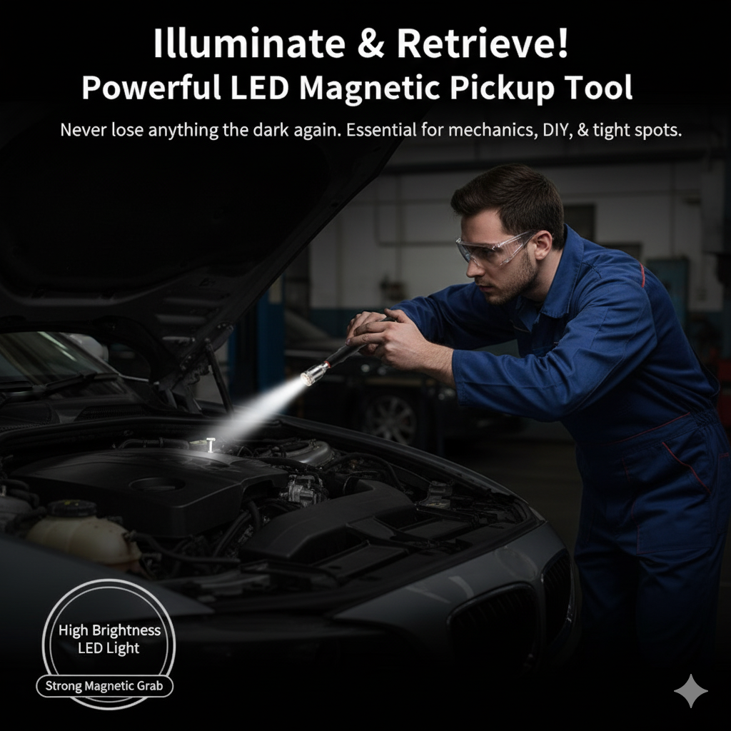 Built-in LED Light: Never search in the dark again! 🔦 The bright LED illuminates the tightest spaces, ensuring you can clearly see the lost item and guide the magnetic rod right to it.