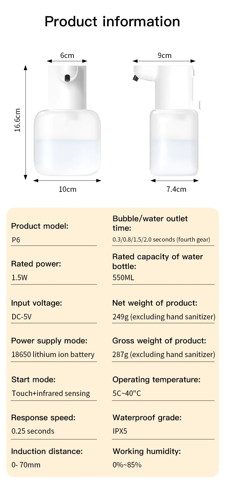 Say goodbye to messy counters and hello to effortless hygiene with the P6 Automatic Foam Soap Dispenser. This sleek, hands-free dispenser uses a precise inductive sensor to release a rich, creamy lather in just 0.25 seconds, making handwashing quick, clean, and efficient.