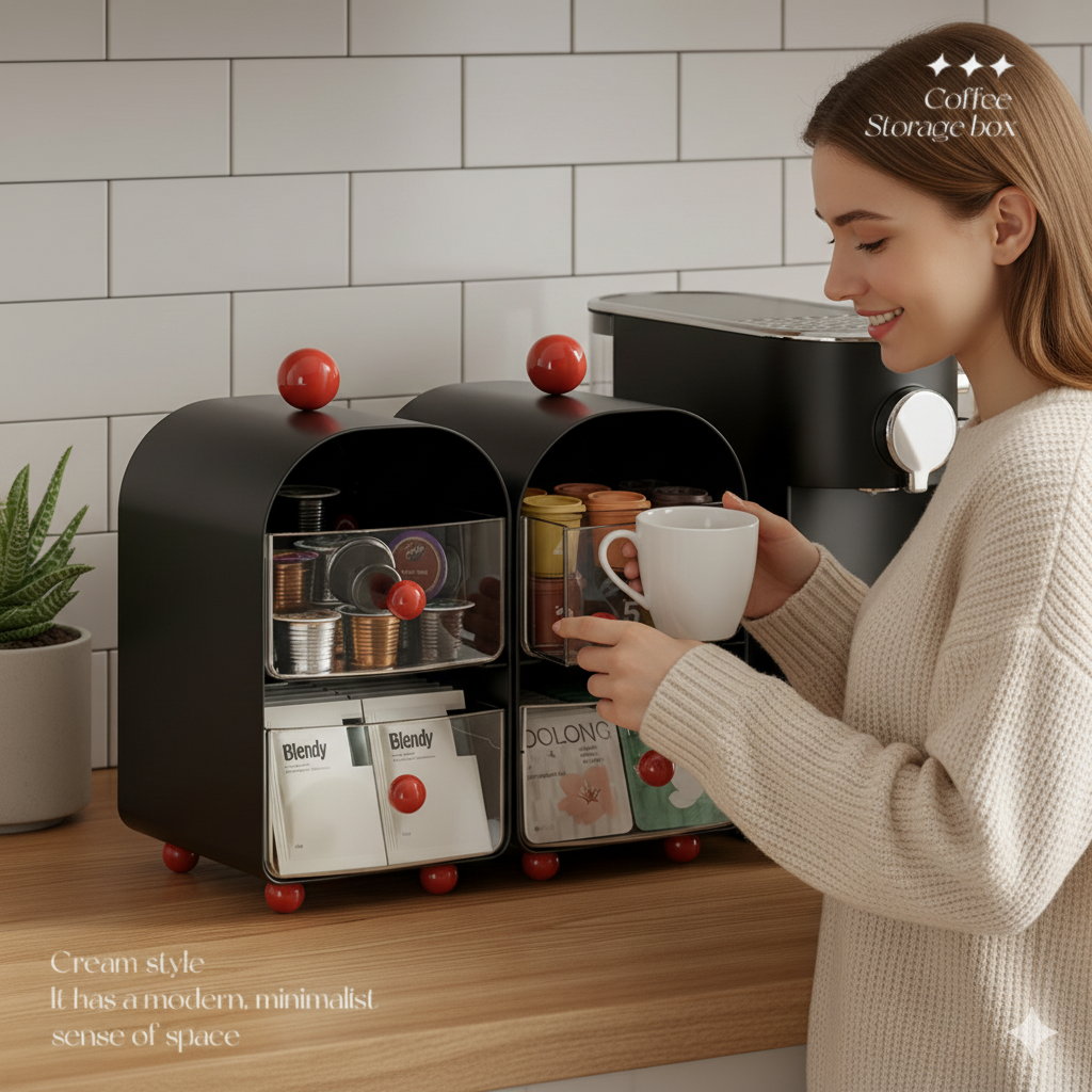 No more rummaging through boxes! The clear, tiered drawers keep your espresso capsules, K-cups, tea bags, and sugar packets perfectly organized and visible 👀, so you can easily grab your favorite blend. The sturdy, compact design saves counter space while making your daily coffee ritual simple and elegant. ✨