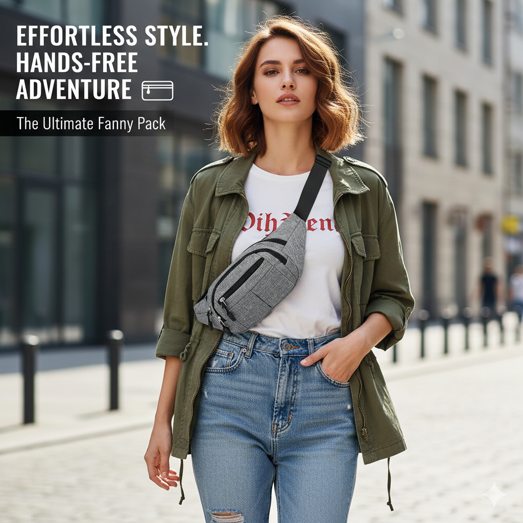 The adjustable strap ensures a comfortable fit for both men and women, while the zip closure provides quick and easy access to your belongings. Whether you're hiking a trail or exploring a new city, this practical and stylish waist pack is the only bag you'll need.