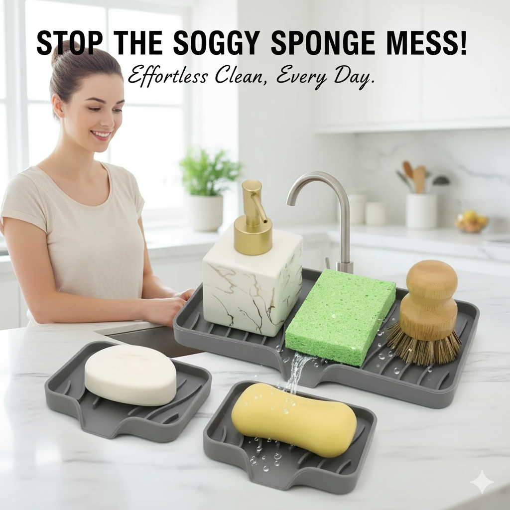 Silicone Faucet Mat Sink Tray – Drain Pad & Soap Holder for Kitchen Countertop